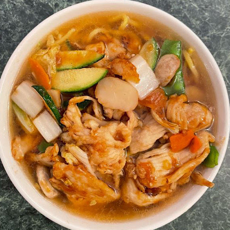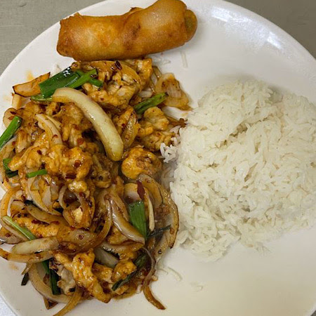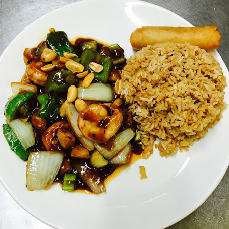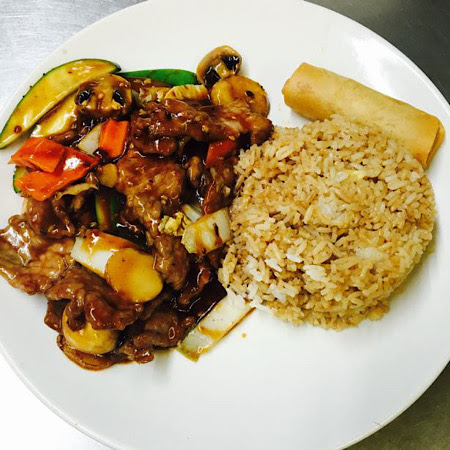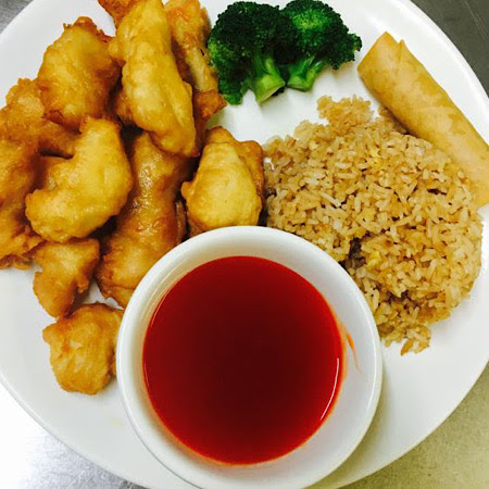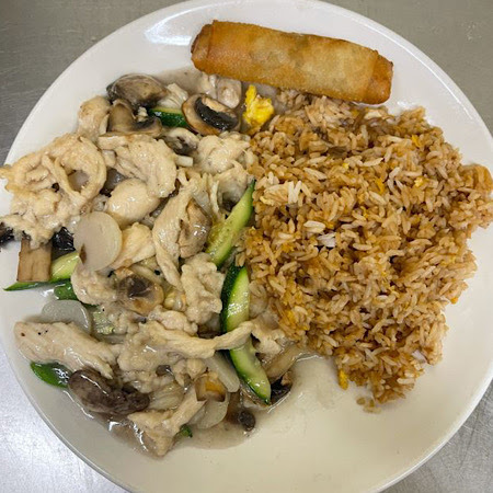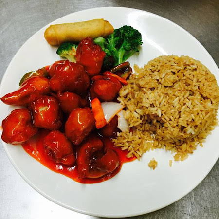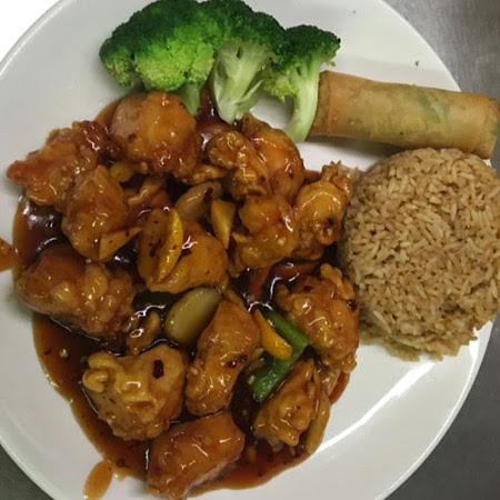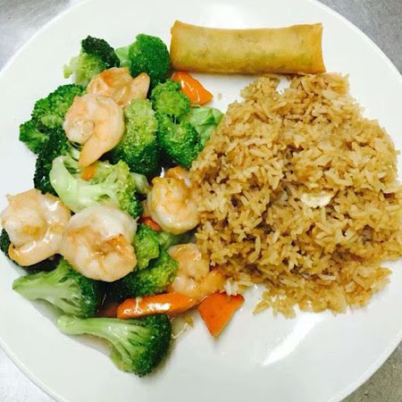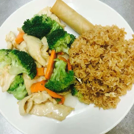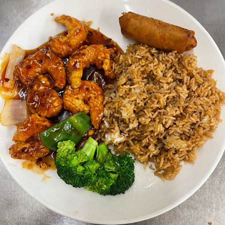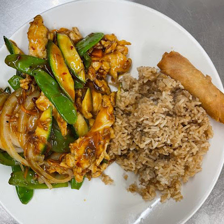 Served with Steamed Rice or Fried Rice, (Substitute Lo Mein for an additional charge) Egg roll and Soup or Salad